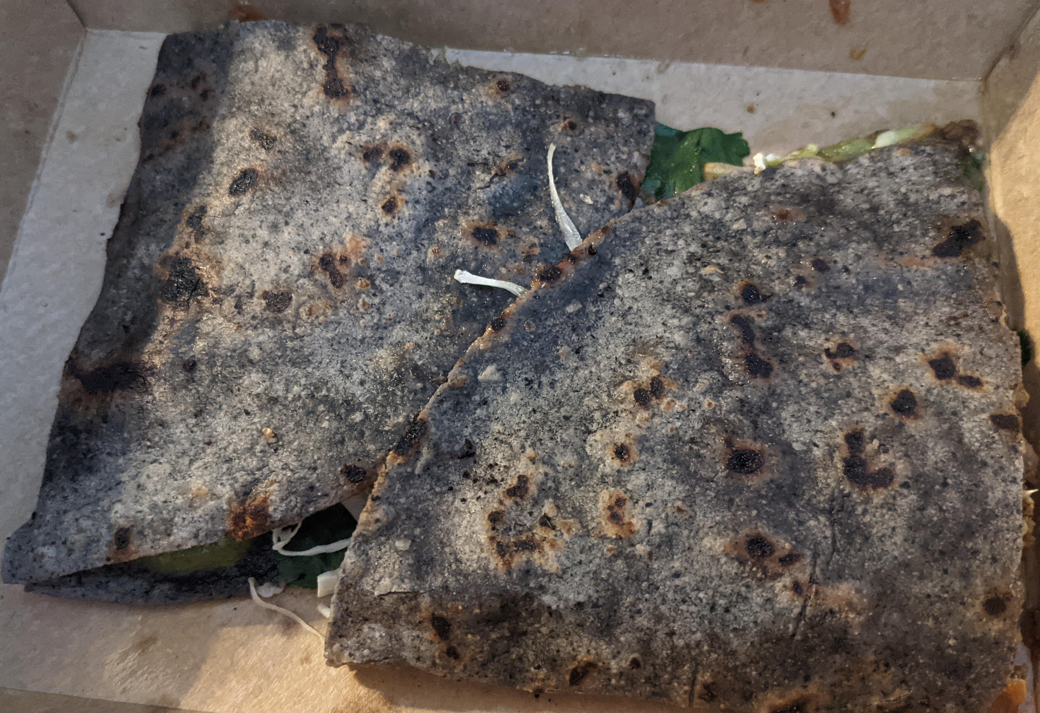 Las Gemelas’s description online describes these as coming on 13 cm tortillas, and they are absolutely using metric measurements to confuse us. Everyone knows that Americans have no idea how big 13 cm is! They were only single-wrapped, and these tortillas were beautiful and clearly made in-house, but that meant that they were not super sturdy, and the pollo one fell apart immediately. Of these three, the barbacoa was far and away the winner. It was really smoky and richly lamb-y. On the other hand, the other two were just kind of boring and dry.