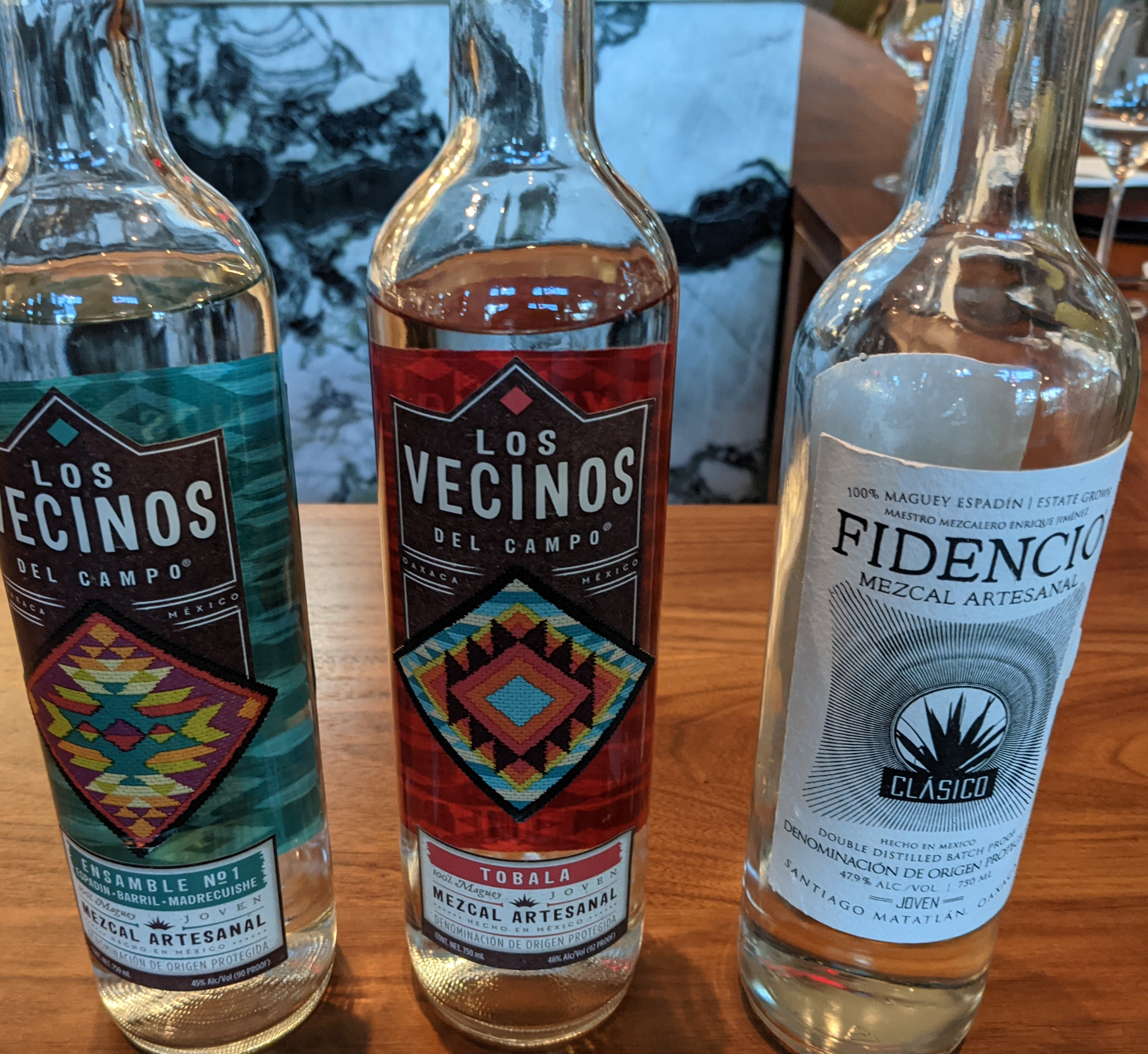 That brings to dessert, as well as “dessert.” The law of tres leches said that I must order tres leches, and after consulting the server, who declared it a “nine out of ten,” that was settled. Paraíso is a legit mezcal bar and thus had roughly thirty mezcals on the menu. Don’t quote me on this, but they may have even more than Espita. And when you love mezcal and you want to know mezcal but you know literally nothing about mezcal, you need a flight and you need someone to talk you through it. Fortunately, Paraíso has one of those things! We ordered one of their two flights and received generous pours of the three bottles seen here. The middle one, Los Vecinos del Campo Tobala was the overall winner from the three of us who participated in blind side-by-side tasting, but none of us know why. I would love to see them put together a real flight program or mini tasting notes or hire a mezcal sommelier (sommeliero?) to educate our ignorant asses.